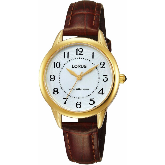 Ženska ročna ura Lorus predstavlja popolno kombinacijo elegance, funkcionalnosti in vsakodnevne uporabnosti. Gre za klasičen model, ki navdušuje s svojo minimalistično obliko in toplimi barvnimi kontrasti – zlato ohišje, bel številčnik in rjav usnjen pašček ustvarjajo brezčasen modni dodatek, ki nikoli ne gre iz mode.