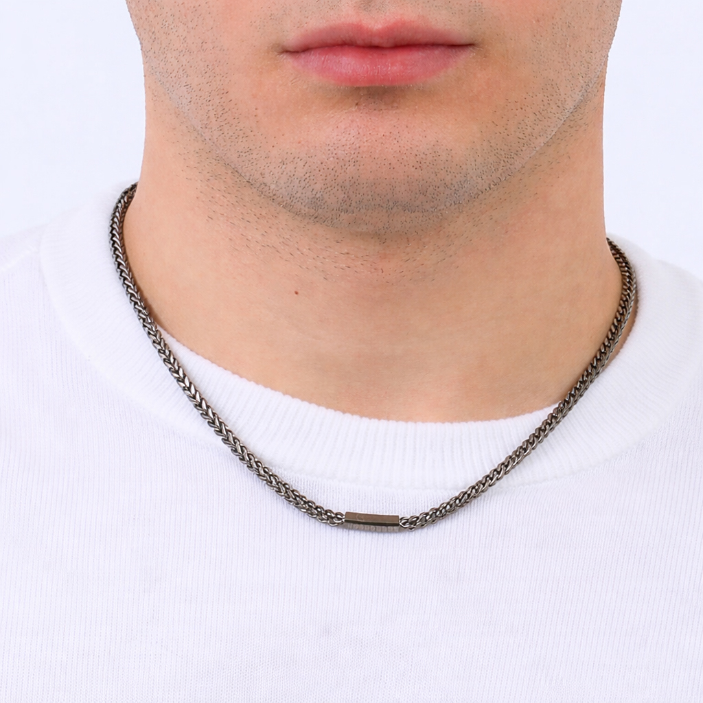 Črna barva v moškem nakitu simbolizira moč, odločnost, eleganco in skrivnostnost. Antracitni ton doda dodatno globino in prefinjenost, zaradi česar verižica deluje sodobno in luksuzno. To je barva, ki se odlično poda tako k temnim kot svetlim oblačilom.