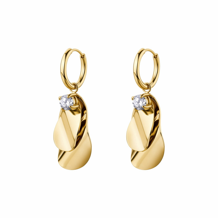 Ženski uhani Brosway BOM22 predstavljajo popolno ravnovesje med eleganco, modernim dizajnom in brezčasnim sijajem. Njihova unikatna oblika, ki spominja na mehko valovito strukturo, ustvarja dinamičen in hkrati prefinjen videz. Zlata barva v kombinaciji s sijočim kristalom daje uhanu luksuzen videz, ki takoj pritegne pozornost.